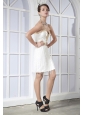 White Column Sweetheart Mini-length Satin Beading Prom Dress