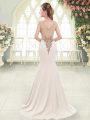 White Elastic Woven Satin Side Zipper Scoop Sleeveless Dress for Prom Sweep Train Beading