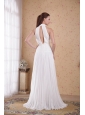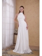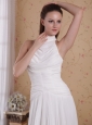 White Empire High-neck Floor-length Chiffon Pleat Prom Dress
