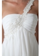 Home >  Prom Dresses >  Short Prom Dresses > White Empire One Shoulder Appliques Short Prom Dress Knee-length Chiffon