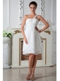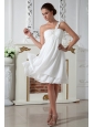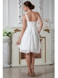 White Empire One Shoulder Appliques Short Prom Dress Knee-length Chiffon