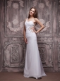 White Empire One Shoulder Brush Chiffon Ruch and Beading Prom / Evening Dress