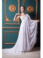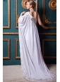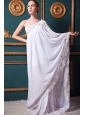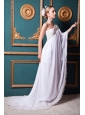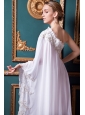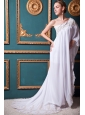 White Empire One Shoulder Brush Train Chiffon Appliques Wedding Dress