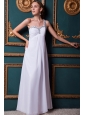 White Empire One Shoulder Floor-length Chiffon Beading Homecoming Dress