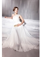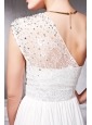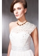 Home >  Prom Dresses >  Discount Prom Dresses > White Empire One Shoulder Floor-length Chiffon Beading Prom Dress
