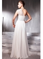 White Empire One Shoulder Floor-length Chiffon Beading Prom Dress