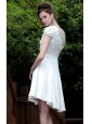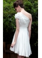 White Empire One Shoulder Knee-length Elastic Woven Satin Ruch and Hand Made Flowers Prom / Homecoming Dress