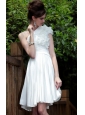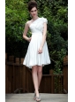 Add a romantic vibe to your 2012 prom or formal. This chiffon one shoulder empire flower white cocktail dress simple but unique and it will make you to be the unique princess on your party. The dress features an asymmetrical neckilne adorned by the appliques which can show off your perfect shoulder. The pleats on the waist part will be sure to accentuate your curve. You will walk freely in the chiffon skirt.