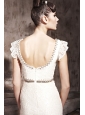 This champagne prom dress is made from special furry fabric.The fitted bodice is accented with scoop neckline and two short sleeves and also some chic embellishment.The waistband adorned with beadings defines your waistline and you slim figure.The floor-length skirt flows freely to create a beautiful sweep train and a zipper up back completes this gorgeous design.