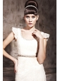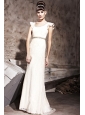 White Empire Scoop Floor-length Special Fabric Beading Prom /Celebrity Dress