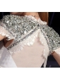 Vintage-inspired dresses have a unique charm and elegance that modern designs cannot duplicate. This one is an example of what we mean. It features a classic sweetheart neckline , smoothly ruched bodice and an empire waist gathered by a glittering and charming rhinestone brooch.All eyes will definitely be on you for the gorgeous and wonderful jewel-encrusted cap sleeves with intricate bead work throughout.The flowy skirt with a flounced train is sheer and made from a lightweight fabric. It's comprised of several fluid layers that move beautifully when you walk. A noble gown, sure to be a favorite.