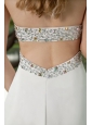 You will be the talk of the big day in this elegant evening dress.The dress features sparkling beading around the strapless neckline as well as the dropped waist, toghther with the pleated bodice make the dress dazzling. Natural soft chiffon skirt flows freely.A wide galloon with glimmering beading accents on the sexy open back to complete the look.