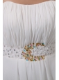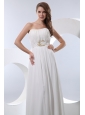White Empire Strapless Floor-length Chiffon Beading Prom Dress