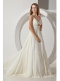 Home >  Prom Dresses >  Unique Prom Dresses > White Empire Straps Prom Dress Brush Train Chiffon