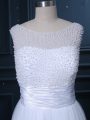 White Empire Tulle Scoop Sleeveless Beading and Lace Lace Up Wedding Dress