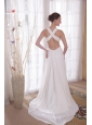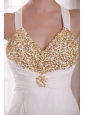 White Empire V-neck Brush Train Chiffon Beading and Rhinestones Prom / Evening Dress