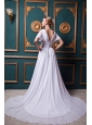 White Empire V-neck Court Train Chiffon Appliques Prom Dress