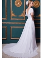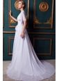 Home >  Wedding Dresses >  Beach Wedding Dresses > White Empire V-neck Court Train Chiffon Appliques Prom Dress