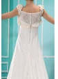 White Flowers Decorate Wedding Dress With Lace Sequare Neckline