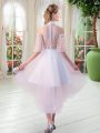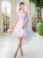 White Half Sleeves Tulle Zipper Evening Dress for Prom and Party