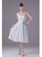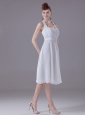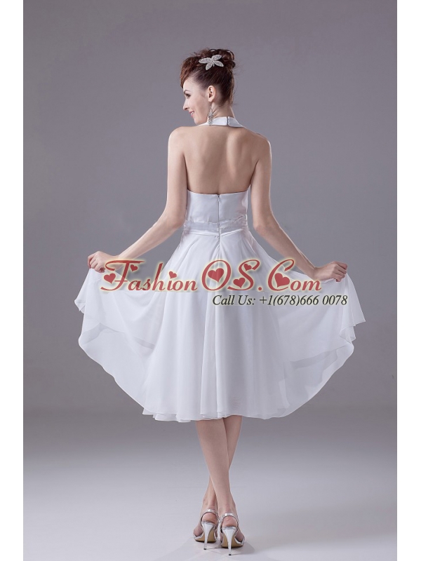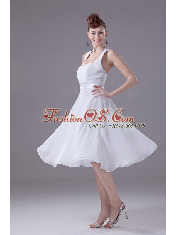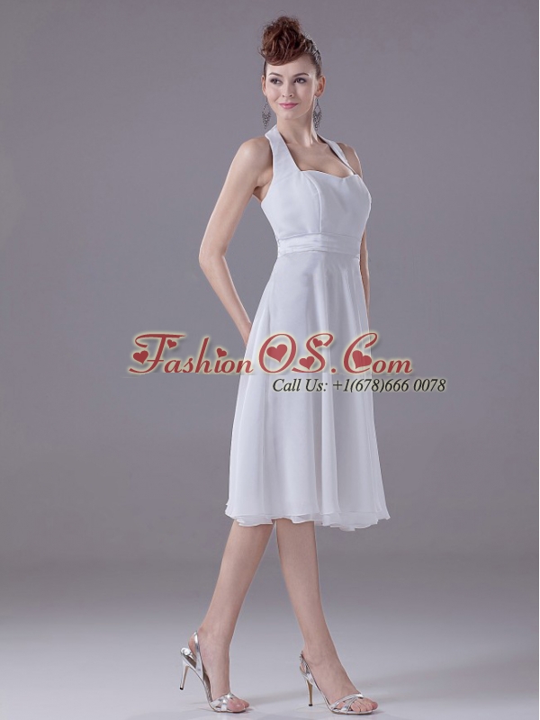 White Halter Empire Chiffon Tea-length Bridesmaid Dress