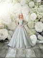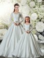 White Long Sleeves Chapel Train Lace and Belt Quinceanera Gowns