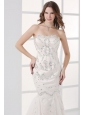 White Mermaid Sweetheart Court Train Prom Dress with Beading