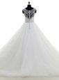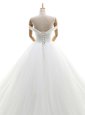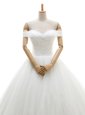 White Off The Shoulder Neckline Ruching Wedding Gowns Sleeveless Lace Up