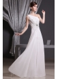 White One Shoulder Beading For Prom Dress Floor-length Chiffon