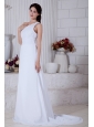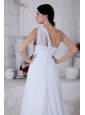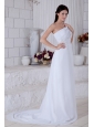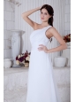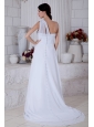 White One Shoulder Brush Train Chiffon Prom / Evening Dress With Appliques
