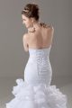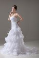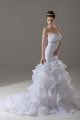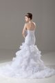 White Organza Lace Up Wedding Dresses Sleeveless Brush Train Beading and Ruffled Layers