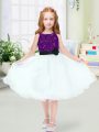 White Organza Zipper Scoop Sleeveless Knee Length Flower Girl Dress Sequins and Hand Made Flower