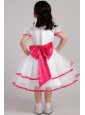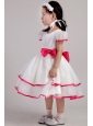 White Princess Scoop Tea-length Organza Beading and Bowknot Little Girl Dress