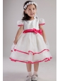 Home >  Flower Girl Dresses > White Princess Scoop Tea-length Organza Beading and Bowknot Little Girl Dress