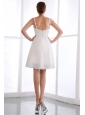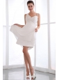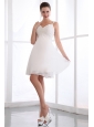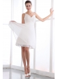 White Prom Dress A-line Spaghetti Straps Appliques Mini-length Chiffon