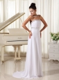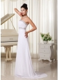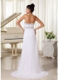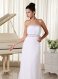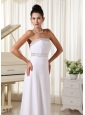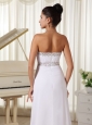 White Prom Dress And Gown Strapless Beaded Decorata Bust Brush Train Skirt