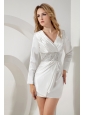 Exquisite and gorgeous white dress dress. The sheathy bodice which flatters the slim line covered with pleates features a v-neck. The long sleeves feature your two arms. Beads work add the charm of the empire waist. The short skirt shows your slim legs. The zipper in the back of the dress secures it in place and makes for easy off and on.