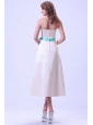 White Sash Satin Strapless 2013 Dama Dresses
