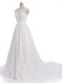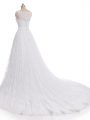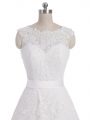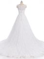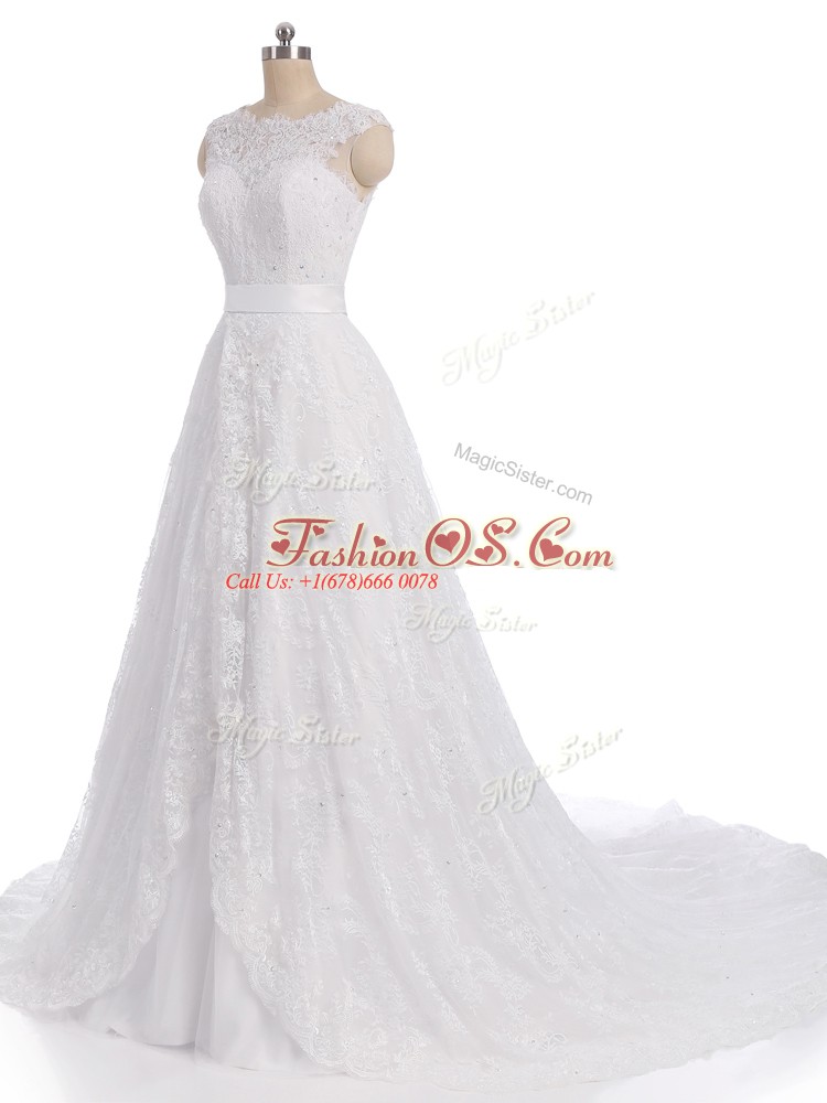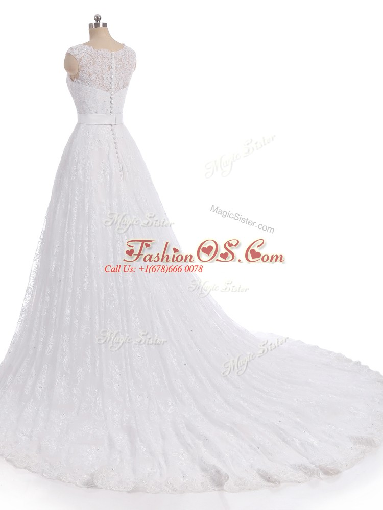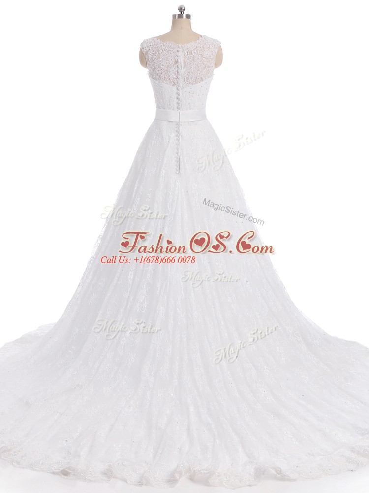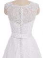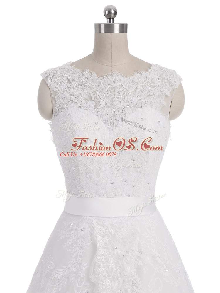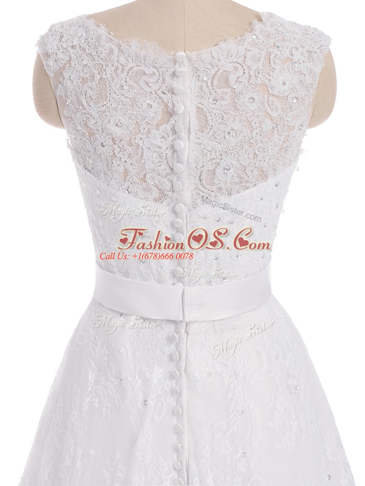 White Scalloped Neckline Lace Wedding Gown Sleeveless Clasp Handle
