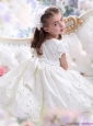 White Scoop 2015 Little Girl Pageant Dress with Bowknot and Cap Sleeves