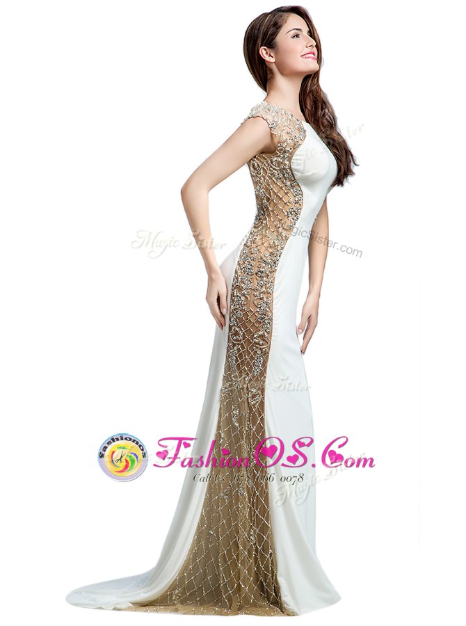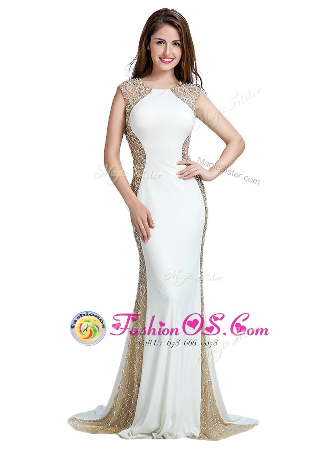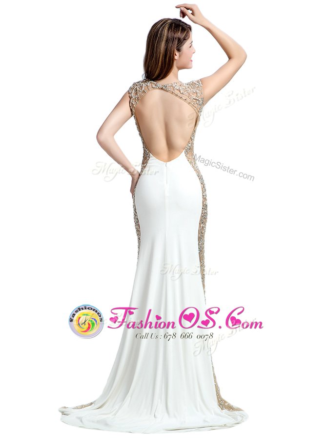 Home >  Prom Dresses >  Prom Dresses On Sale > White Scoop Backless Beading Brush Train Sleeveless