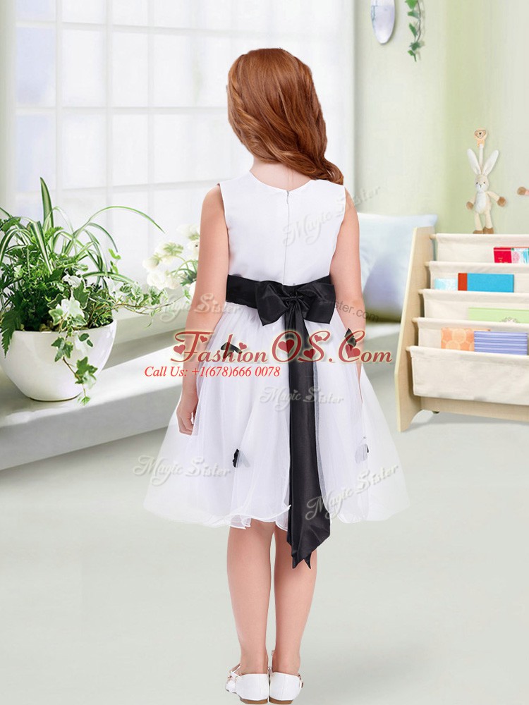 White Scoop Neckline Appliques and Hand Made Flower Flower Girl Dress Sleeveless Zipper