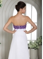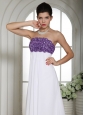 White Simple Beaded Decorate Bust Prom Dress With Strapless