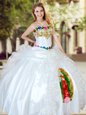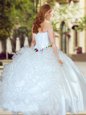 White Sleeveless Beading and Appliques and Ruffles Floor Length Sweet 16 Dresses