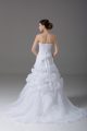 White Sleeveless Beading and Pick Ups Lace Up Wedding Gowns