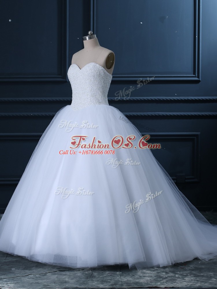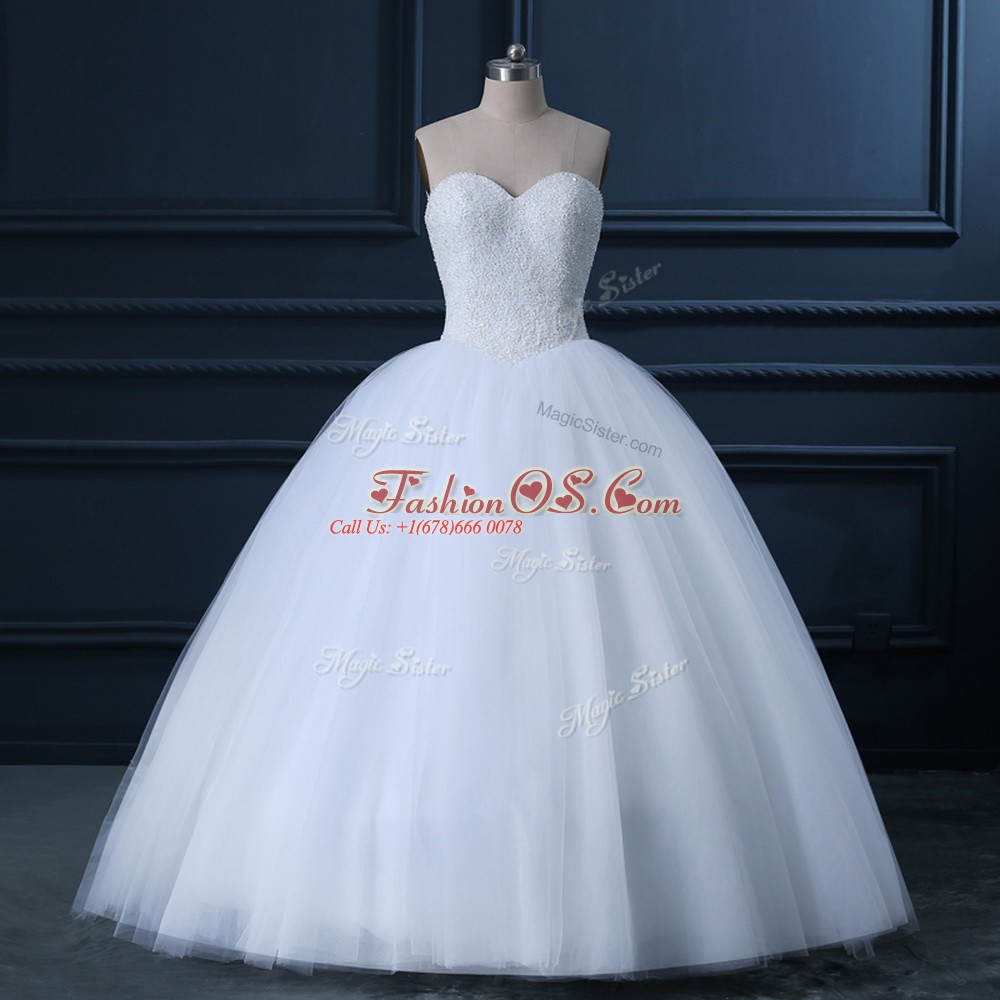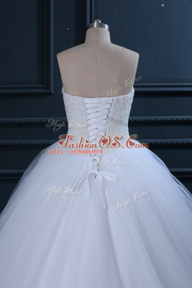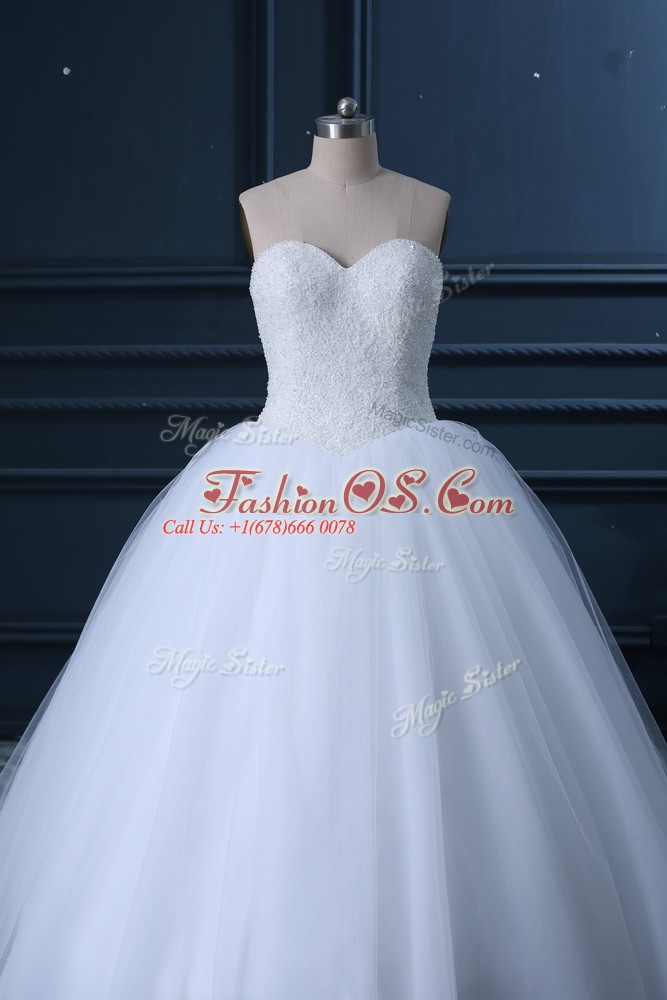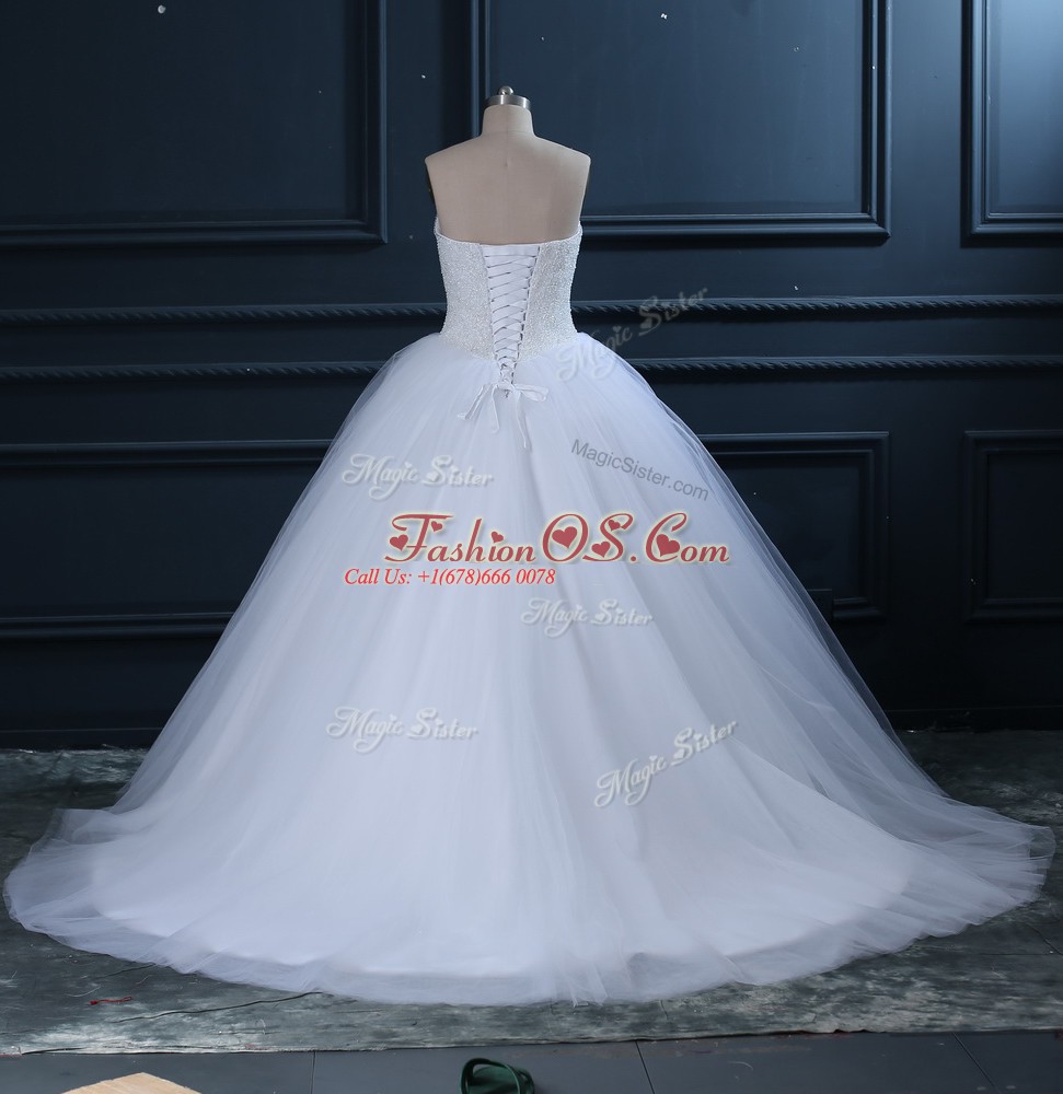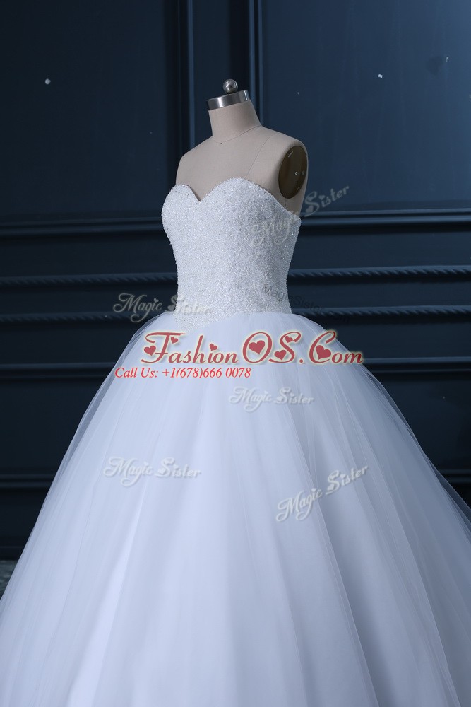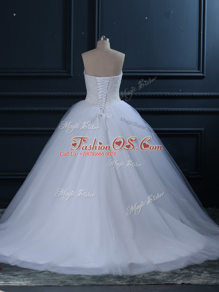 Home >  Wedding Dresses >  Wedding Dresses 2018 > White Sleeveless Beading Lace Up Wedding Dress