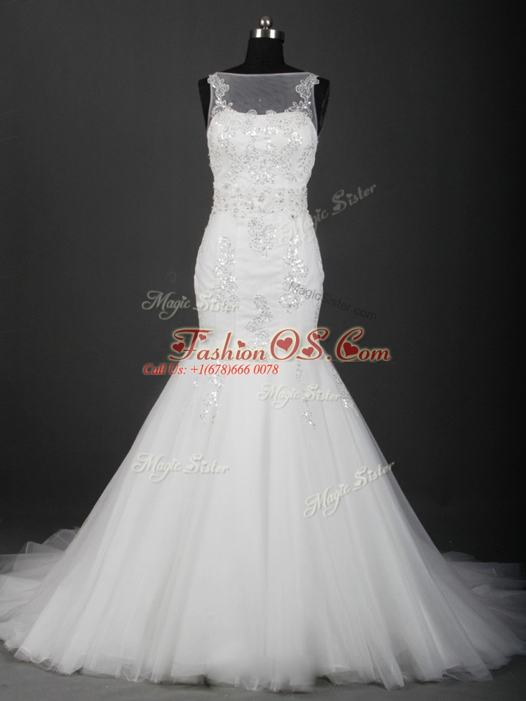 Home >  Wedding Dresses >  Wedding Dresses 2018 > White Sleeveless Brush Train Appliques Bridal Gown