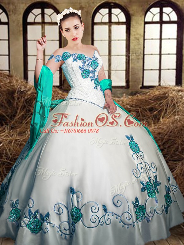White Sleeveless Floor Length Embroidery Lace Up Quinceanera Dresses