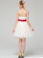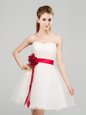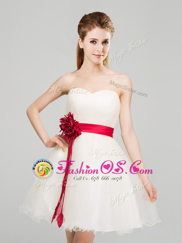 White Sleeveless Mini Length Sashes|ribbons and Hand Made Flower Zipper Vestidos de Damas