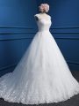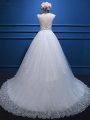 White Sleeveless Tulle Brush Train Backless Wedding Dresses for Beach and Wedding Party
